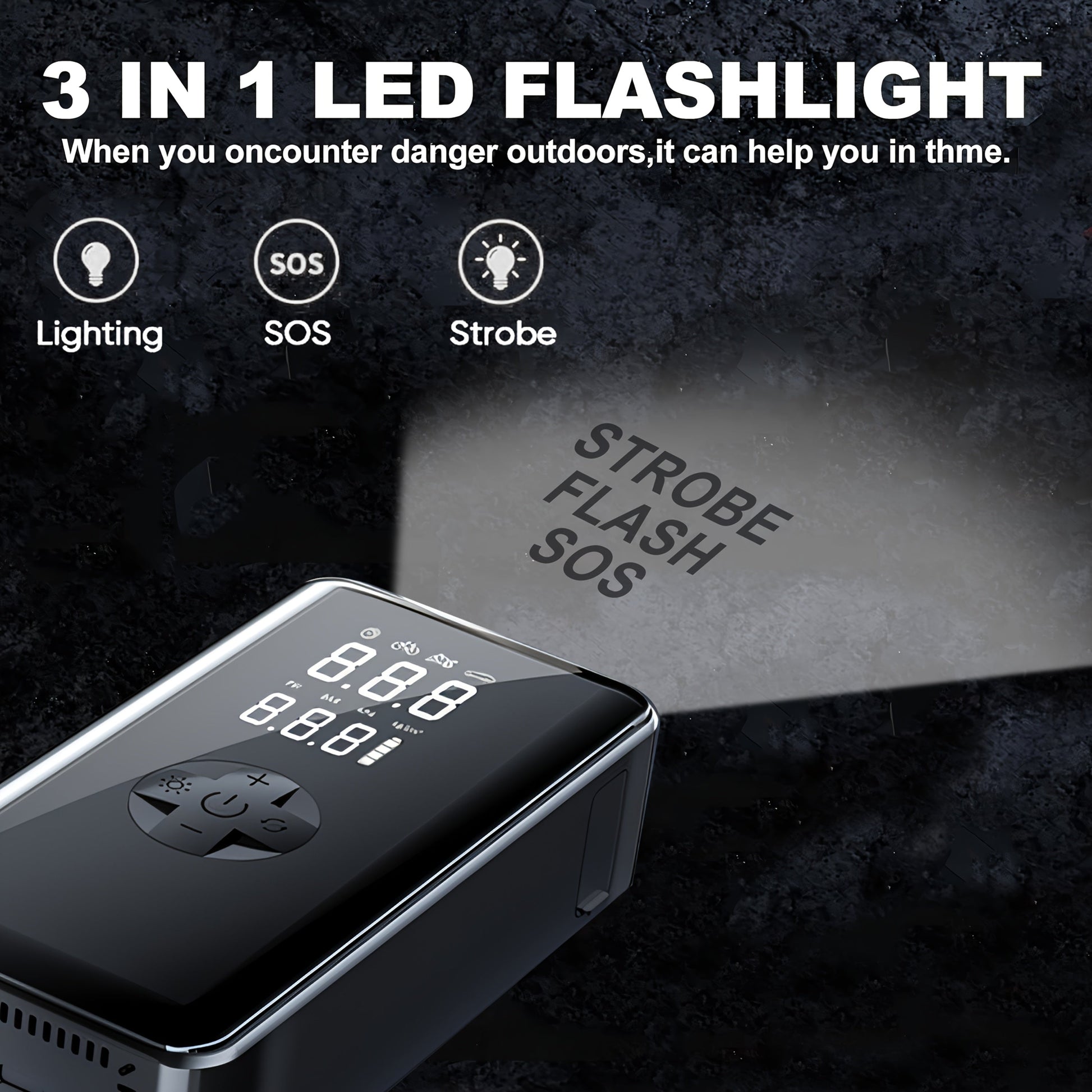 The 7-in-1 Car Battery Starter Kit is your all-in-one solution for roadside emergencies. It instantly jump-starts vehicles up to 5.0L Gasoline or 3.0L Diesel engines, ensuring you’re never stranded. Equipped with a 150 PSI air compressor, it can quickly inflate tires, bikes, or sports balls in just minutes. The LED flashlight offers three modes for emergency lighting, while the integrated power bank keeps your devices charged. Its compact design makes it easy to store in your vehicle, ensuring you’re always prepared. Refer to the image for exact dimensions. Stay powered and safe with the 7-in-1 Starter Kit!